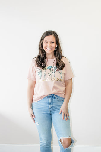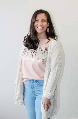 Our relaxed Boyfriend Tees are so comfy, but have the cutest design! We are so obsessed with the gold foiling and love the reminder to always cultivate kindness.