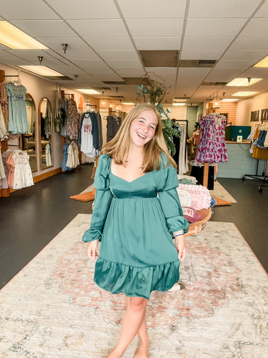 We are in love with the flirty look of this puff sleeve dress! Silky soft fabric shapes this adorable dress that features a sweetheart neckline, long sleeves with tiered puff at the shoulder, and a seamed high waist. Classic babydoll silhouette is finished with a ruffled mini hem.