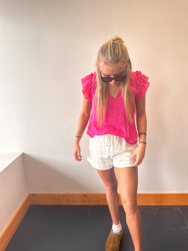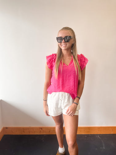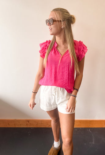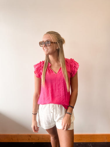 Spring days were meant for gorgeous looks with this ruffle neck top! Everyones favorite season color blooms across lightweight chiffon, shaping a ruffled halter neckline atop a ruched yoke and an A-line bodice. Secured with a button closure and keyhole opening on back.