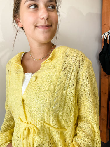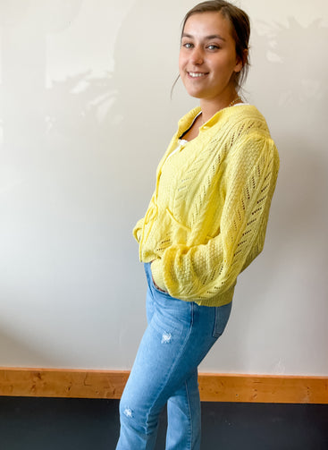 Who else loves yellow like we do? This knitted sweater is perfect for the cool summer days that we are looking forward to. Packed full of fun details, she is sure to be a crowd favorite.