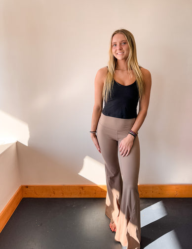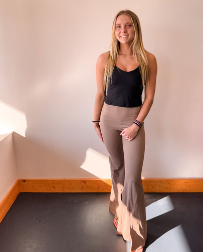 You'll reach new levels of comfort and style in these stretch flare pants! These comfy stretch knit pants have a high elasticized waist and slimming flared legs that end at ankle-length hems and topped with the cutest v slit. Pair with your favorite top and sneakers for a casual-cutie look!